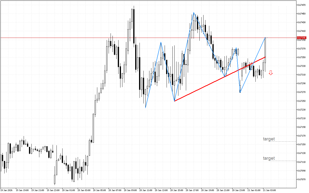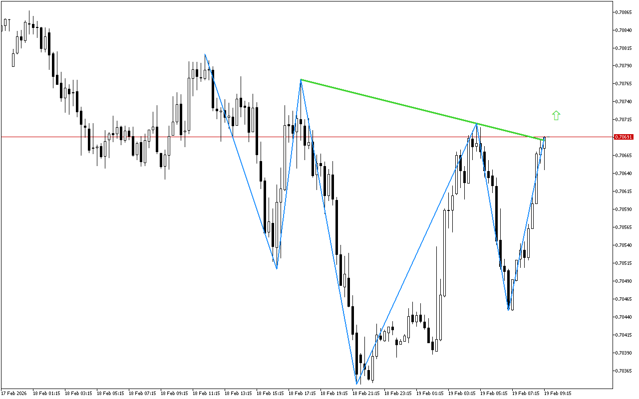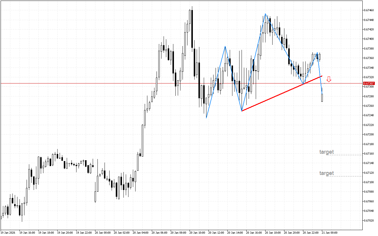AUDUSD M15: График бас және иық үлгісінің қалыптасуын растайды